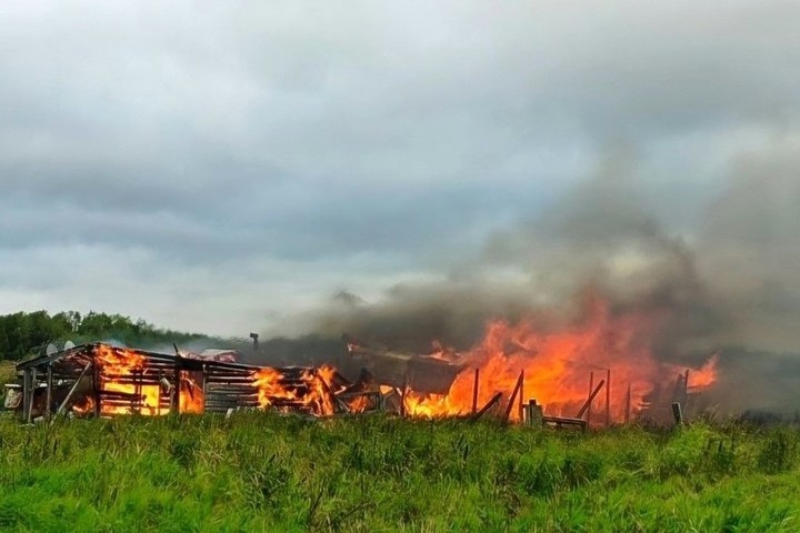 В деревне под Архангельском из горящей хозяйственной постройки эвакуировали животных