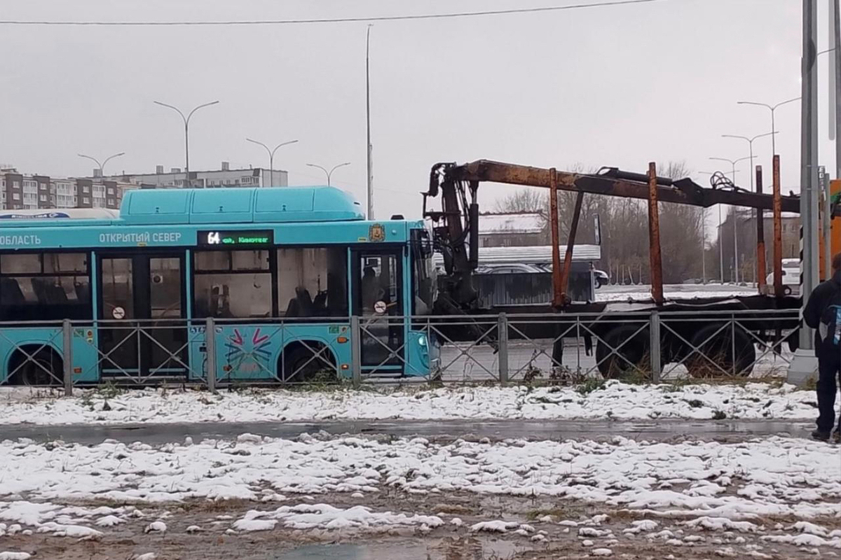 В архангельских пабликах распространяется недостоверная информация о дорожно-транспортном происшествии, которое сегодня произошло с участием автобуса маршрута №64 и лесовоза. Как сообщила транспортная компания РИКО, в результате ДТП никто не пострадал, техника получила незначительные повреждения.