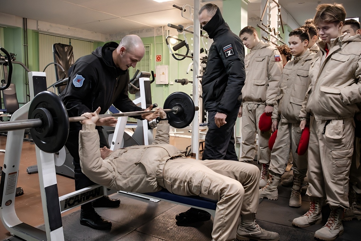 Спортивная составляющая подготовки также была представлена посетителям. Юнармеец Арсений Шибаев уверенно поднял штангу весом 80 кг, за проявленную силу и мужество получил награду – специальный шеврон подразделения.